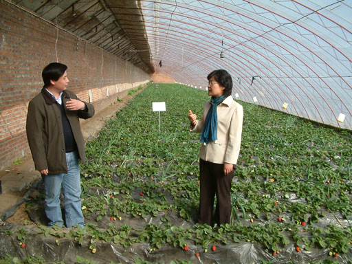 在听完基本情况介绍和实地考察后,王书记指出,兴寿镇作为beat365服务京郊新农村建设六大基地之一,学校应给予更多的关心与支持。在麦庄村草莓种植专业村建设中,学校将发挥技术优势和多学科优势,在种植技术、无公害和有机草莓生产等方面下功夫,还将选派植保教师配合工作,加强对病虫害防治技术的指导,提高总体管理水平,进一步增加农民收入。王书记代表学校感谢董清华同志的辛勤工作,并对其在服务京郊新农村建设中取得的成绩表示祝贺。
