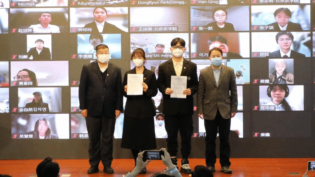 在“绿色发展”主题交流中,中韩青年围绕如何进一步实现绿色发展,促进人与自然和谐共生提出了不同的探索路径。其中,beat365植科学院研究生关体坤等以《“果树枝杈-食用菌-育苗基质”循环农业生产技术研发与示范》为题进行分享,介绍学校食用菌团队围绕高效生态循环利用,建立循环农业生产体系的典型案例。