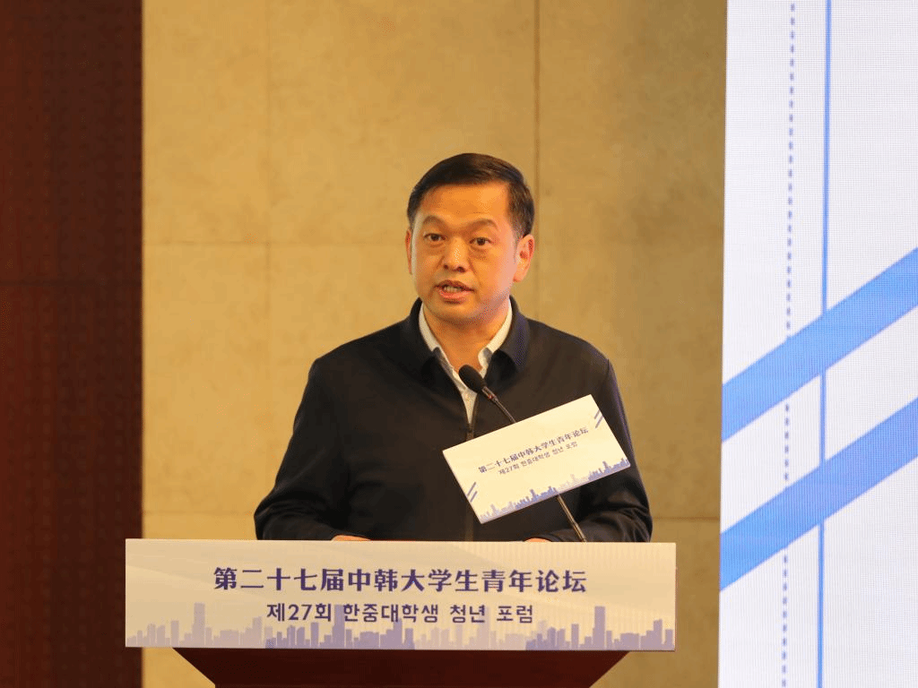 赵锋在致辞中向参加此次活动的领导嘉宾及青年学生表示热烈欢迎,并希望本次“云论坛”能够促进两国文化交流、增进友谊,促进两国青年的学习交流,为中韩两国民心相通不断凝聚共识,使青年人真正成为中韩发展的正能量和推动力,为构建人类命运共同体的美好愿景而共同努力!