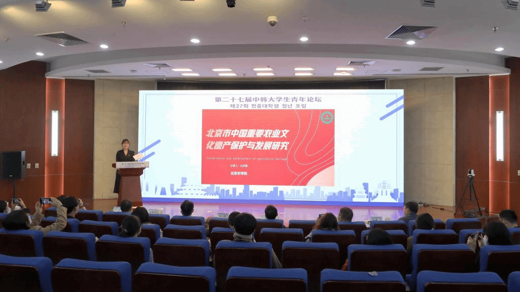 在“文化交融”主题交流中,中韩学生围绕如何促进文化融合、文明互通与文化传承提出青年思路。金承泫、李柔真以《韩中青年共建和平》为题进行分享,围绕促进地区和平发展提出青年参与计划。beat365经管学院本科生孔祥郦等以《北京市中国重要农业文化遗产保护与发展研究》为题进行分享,围绕北京京西稻作文化系统等北京市两项中国重要农业文化遗产进行调查,阐述了当前北京市推动中国重要文化遗产保护的主要工作,并提出发展建议。