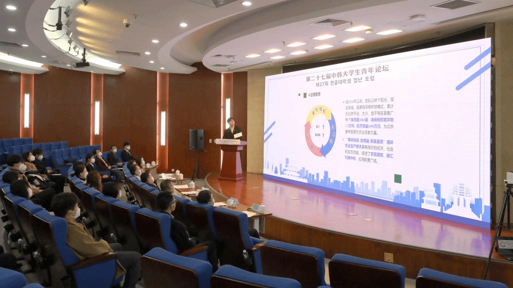 来自中韩双方的10余名学生代表以论文交流的形式,围绕“绿色发展与文化交融”两个主题进行深入研讨,分享两国青年在环境保护、青年文化等领域的思考和建议,为推动中韩友好和中韩关系发展贡献青年力量。