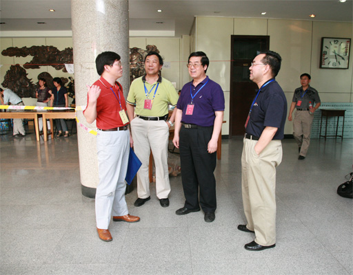 校长王有年巡视考场并与市教委四六级考试巡视员北京师范大学教学服务中心副主任徐宙交流