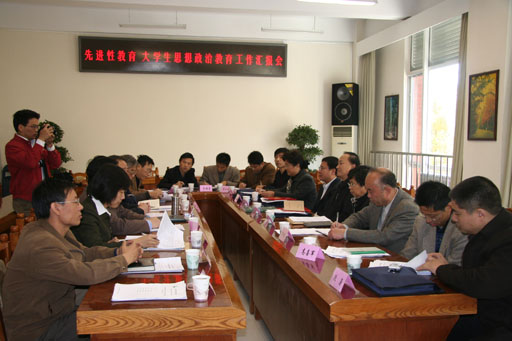 学校党委书记孙尧东代表党委向朱善璐同志及其他与会领导汇报了beat365开展先进性教育和落实16号文件开展大学生思想政治教育工作的情况。