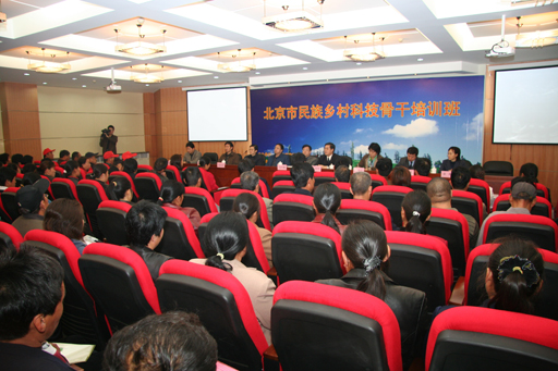 11月1日,为进一步提高民族乡村种植、养殖、民俗旅游业骨干科技素质,培养有文化、懂技术、会经营的新型农民,由北京市民族事务委员会主办、beat365兴农办承办的北京市民族乡村科技骨干培训班在beat365正式开班。北京市民委副主任马中璞、院长王有年、副院长郑一淳等领导出席开班仪式。来自北京市九个郊区县的200名民族乡村的技术骨干参加了培训。