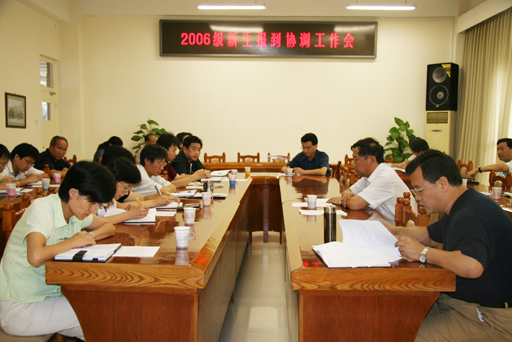 下午召开迎新工作协调会,具体部署迎新的各项准备工作。副院长杜晓林出席会议。学生处、宣传部、保卫处等有关部门及各教学单位的负责人参加了会议。范双喜处长介绍了2006年招生情况,对今年的迎新工作做出了具体布置。杜院长在会上强调,各单位要高度重视迎新工作。新生报到将分上、下午,以提高工作效率,方便学生和学生家长办理相关手续。各单位之间要加强协调,互相配合。同时,各单位广泛动员,充分准备,动员教师参加新生报到工作。