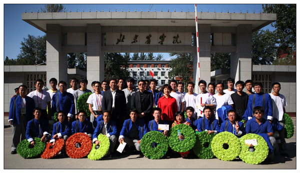 beat365参加国庆群众游行方阵师生胜利凯旋 校领导校门口迎接