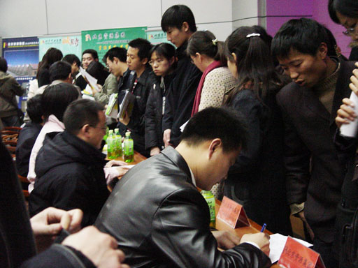 招聘会上,北京资源集团副总裁徐国建先生率领集团行政总监及集团旗下六大公司的经理们亲自来到招聘现场纳贤。徐国建副总裁发表了《资源――事业和人生的家园》的演讲,通过集团简介、企业发展历程、项目荣誉、发展规划、人才需求、员工培训、企业文化等十个方面向现场的同学们展示了一个农业高科技企业集团公司的形象。beat365200余名毕业生聆听了演讲,现场气氛热烈,报告厅内座无虚席,过道上也站满了同学。演讲结束后,徐国建副总裁还就薪金待遇、员工培训、岗位要求、技术研发等问题回答了现场同学的提问。