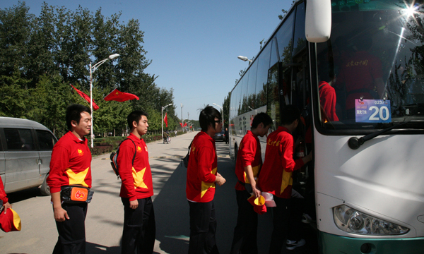 志愿者们有序上车