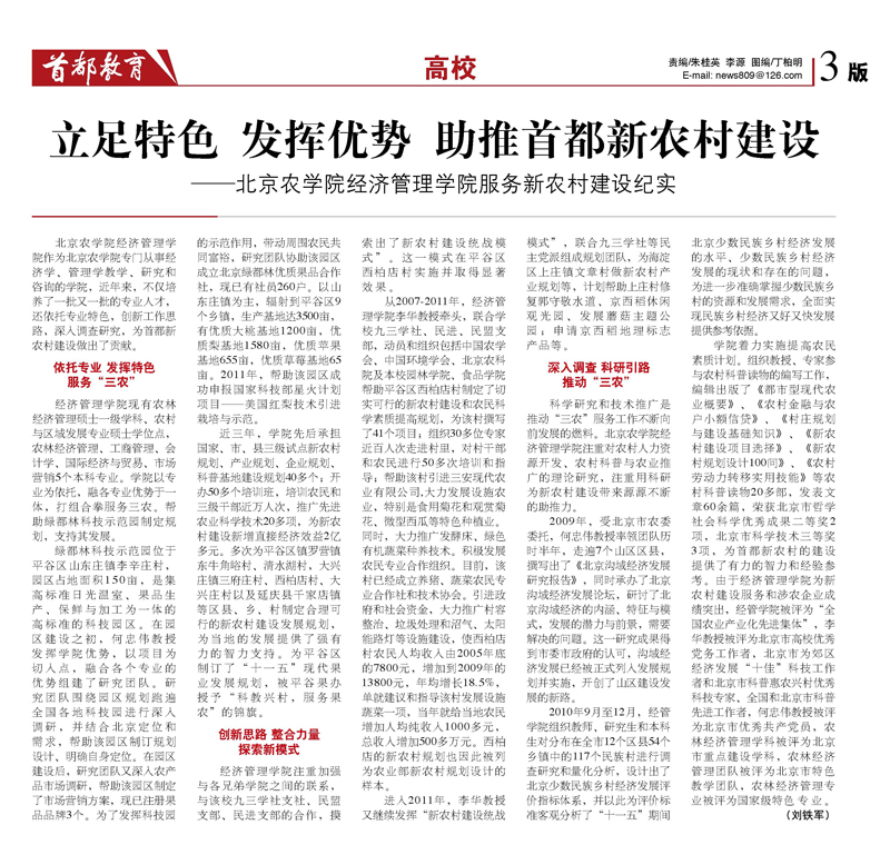 【首都教育】立足特色 发挥优势 助推首都新农村建设---beat365在线唯一官网经济管理学院服务新农村建设纪实