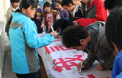 启动仪式上,自强协会学生代表宣读了倡议书,倡议北农学子摒弃不良生活习惯,端正学习态度,提高自身综合素质,争当文明使者。参加仪式的嘉宾和各系学生在印有“校规铭记我心 文明伴我言行”主题条幅签名。