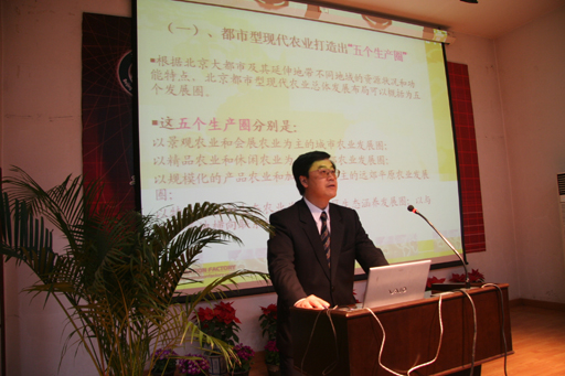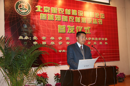 院长王有年教授,中共中央党校教授、平谷区副区长江涛,金盾出版社社长张延扬,国务院参事、九三学社北京市副主委刘秀晨分别以《发展都市型现代农业,实施科教文富民兴村》、《平谷区实施科教兴村的理论与实践探索》、《做好出版工作为建设社会主义新农村服务》、《关于社会主义新农村建设的几点想法》为题作了专题发言。
