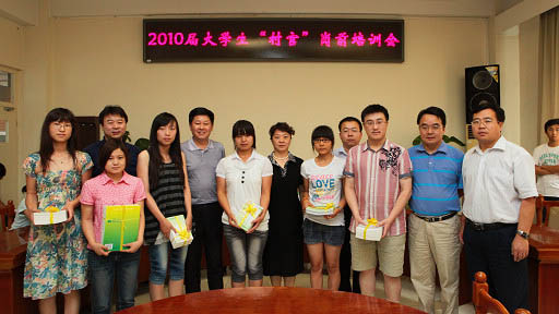 会上,大学生“村官”还就自己关心的问题与领导和学长进行交流。发言结束后,大学生“村官”代表上台领取学校赠书和村官荣誉证书,并合影留念。