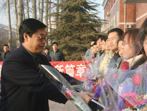 ,初春的太阳,用明亮映衬着喜气洋洋的校园。办公楼前,即将上任的15名“村官”助理手捧植科系、食品系学生赠送的鲜花,食品系的学生展着“上北农,学科技,谱写都市农业新篇章;下基层,做村官,建设社会主义新农村。”欢送条幅。