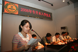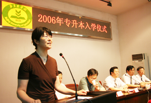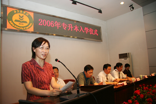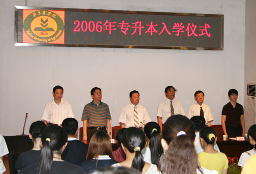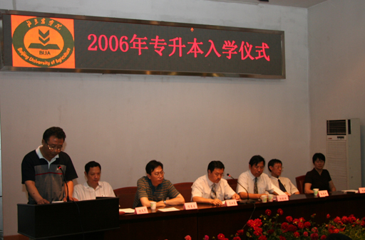2006年6月30日上午10:30时,继2006届毕业典礼之后,beat365又隆重举行了2006年 “专升本”入学仪式。大会由范双喜处长主持,副院长杜晓林、学生处长孙亚利、宣传部部长程春生、教务处副处长杨剑平、沈文华出席了入学仪式,并为每位专升本学生发放了录取通知书。
