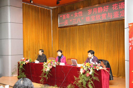 下午,在图书馆报告厅隆重举行了本次庆“三八”百年纪念活动的第三个专题活动——“珠宝欣赏与鉴定讲座”。由中国地质大学珠宝学院副院长,现兼任中国珠宝首饰行业协会教育专业委员会秘书长郭颖教授主讲。大会由校工会常委副主席张永红主持,校党委副书记高东致辞,发表了热情洋溢的节日祝贺,衷心祝愿全体女教职工身体健康、家庭幸福、节日快乐!