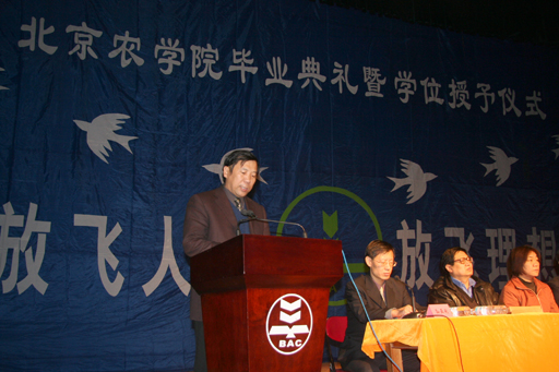 党委副书记王晓霞代表校党政领导致辞。她首先向2006届春季毕业生圆满完成学业表示热烈祝贺并向为beat365教育事业辛勤耕耘、无私奉献的广大教师致以深深的感谢和敬意!王晓霞同志在致辞中充分肯定了广大毕业生同学们在学校发展与建设中所起的积极作用。她还特别提到了学校在近年来,紧紧抓住历史发展的机遇,在人才培养、学科建设、校园基本建设等方面都取得了重大进展,学校总体办学实力和水平显著提高。