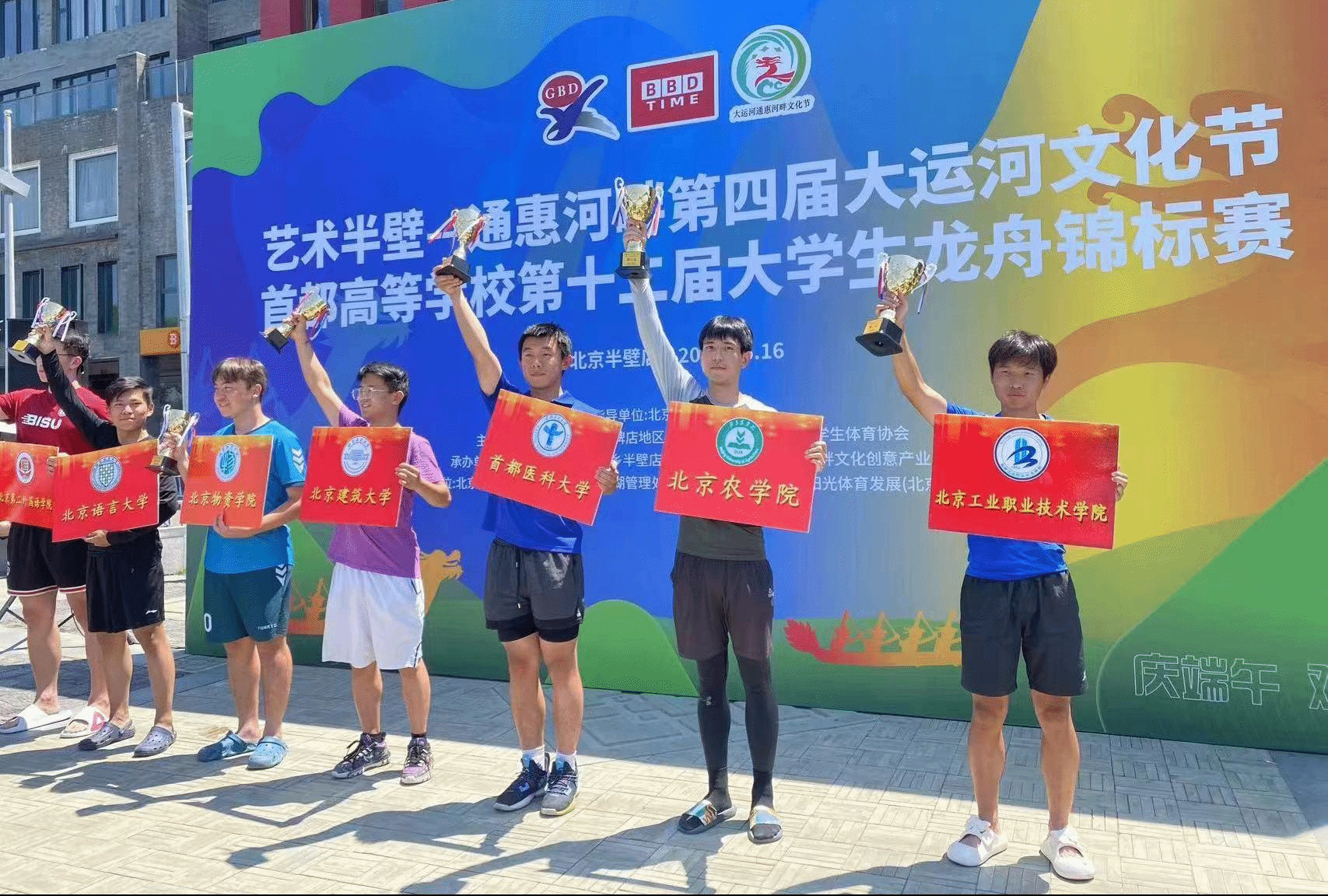 6月16日,首都高等学校第十二届大学生龙舟锦标赛在通惠河上开赛。来自北京大学、中央民族大学等20所在京高校的34支龙舟队、500余名龙舟健儿挥桨竞逐。beat365龙舟队队员在逯合江老师指导下团结一心、配合默契,经过激烈角逐,beat365龙舟队斩获女子乙组冠军、男子乙组季军。