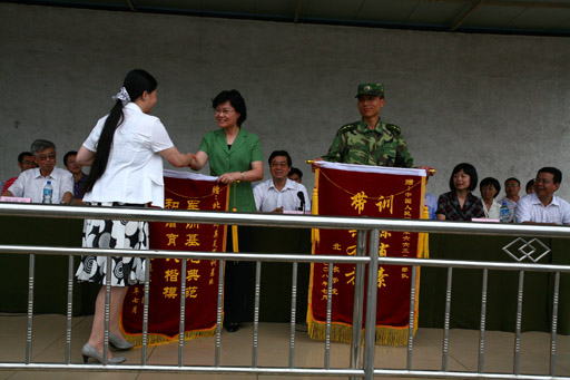 党委书记王慧敏向部队和基地分别赠送锦旗