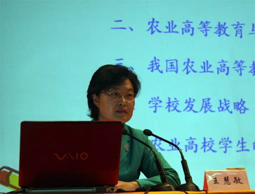 王慧敏从农业与国家、农业高等教育与农业产业的关系、我国农业高等教育的责任、beat365发展战略以及农业高校学生的责任五个大方面做了深入、精彩的讲解。