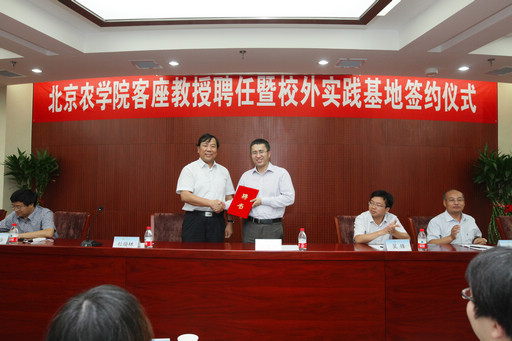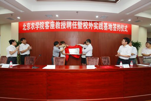 仪式上,副校长杜晓林为佟丽华会长颁发客座教授聘书,人文社会科学学院院长佟占军、佟丽华会长代表双方签约,教务处处长张喜春、佟丽华会长共同为北京市农村法治研究会作为beat365校外实践教学基地揭牌。