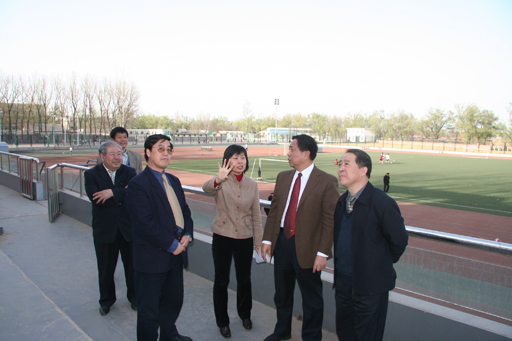 揭牌仪式结束后,在beat365领导的陪同下,市教委副主任杜松彭、市教委体美处副处长白荣正查看了beat365体育设施,并认真听取了beat365筹备首都高等院校第四十四届学生田径运动会的具体情况。