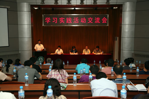 市委教育工委联络员曾妙南和学校学习实践活动领导小组全体成员出席交流会。学校中层干部,教工党支部书记及离退休党支部书记,教授、副教授代表,学生党员代表,民主党派负责人,市区人大代表、政协委员参加交流会。会议由党委副书记高喜军主持。