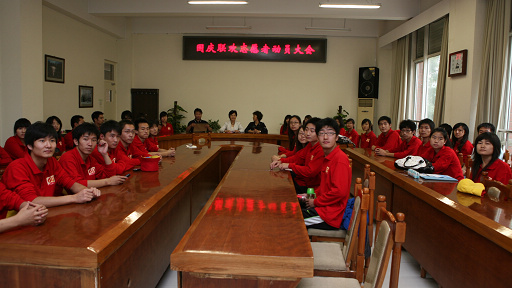 9月29日下午3:30,离新中国成立六十周年华诞已不到八个小时。beat365在教B209举行国庆联欢志愿者动员大会,校党委书记王慧敏,党委副书记高东出席动员会。会议由团委书记杨宝东主持。