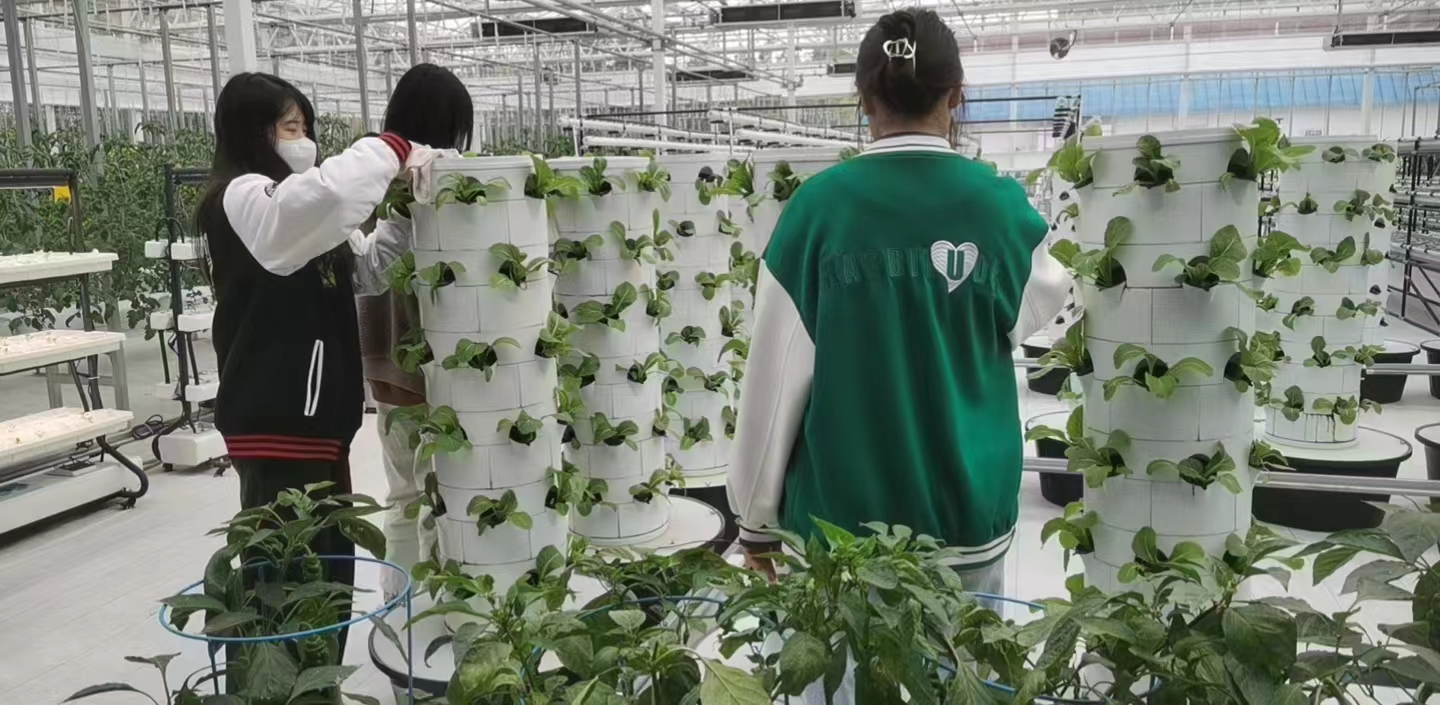 “我学习了很多专业词汇,比如育苗、扦插……我知道了平时吃的蔬菜的成长过程,对农业有了直观的感受。”参与劳动实践的同学们既好奇又兴奋。同学们聚精会神地听老师讲解水培和无土栽培等现代化的种植技术,认真仔细地播种、采摘,劳动热情十分高涨。新生种植的7200株各类菜苗如今已经郁郁葱葱、长势喜人,再次到大棚中开展劳动实践的同学们看到自己的劳动成果,掩饰不住内心的的激动和高兴。