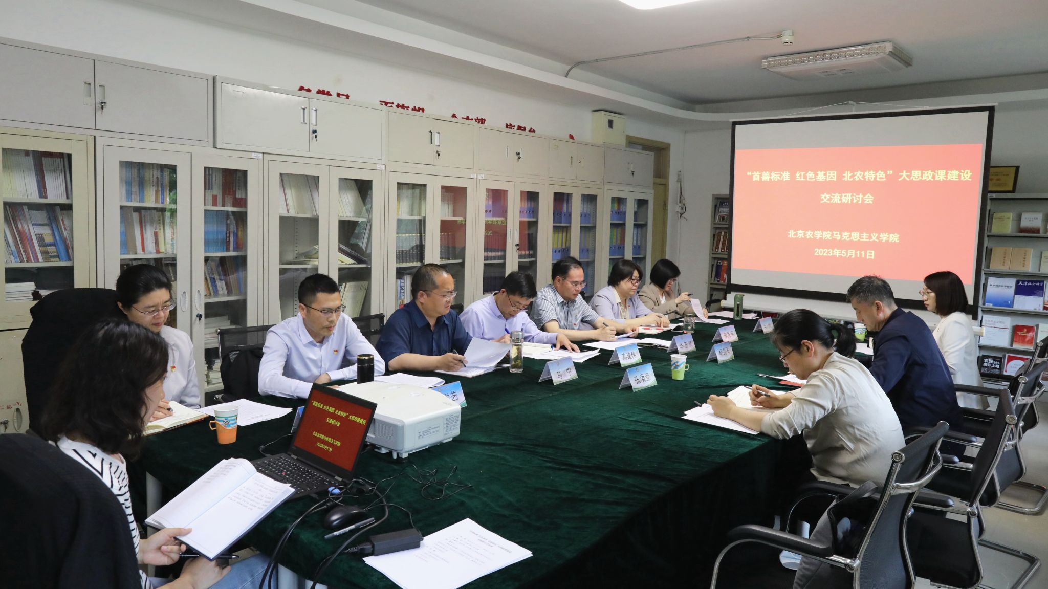 指导组深入马克思主义学院调研指导工作,深入了解学院发展和思政课改革创新情况。马克思主义学院领导班子成员、教研室主任和思政课教师代表,深入交流研讨在学校党委的坚强领导下,积极探索与首都农业院校办学特色和人才培养目标相适应的“大思政课”改革创新的思路、模式、路径和取得的实际效果,并围绕提升课堂效果、强化思政课实践教学、优化师资队伍结构等实际问题,提出了具体建议。指导组对学校深化思政课改革创新,打造“首善标准、红色基因、北农特色”大思政课的做法和成效给予充分肯定。