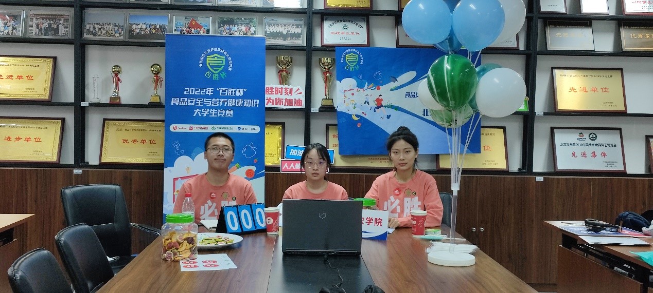 近日,由中国食品科学技术学会、中国市场监管报社、百胜中国等共同举办的2022年“百胜杯”食品安全与营养健康知识大学生竞赛北京分站赛举行,beat365食品科学与工程学院2020级李蕙飞、闫琳同学和2022级梅子雨同学组成的beat365在线唯一官网代表队,最终经过与北京林业大学、北京工商大学代表团的激烈角逐,凭借丰富的知识储备和优秀的团队合作精神脱颖而出,夺得北京分站赛的冠军,将代表北京市参加全国总决赛。