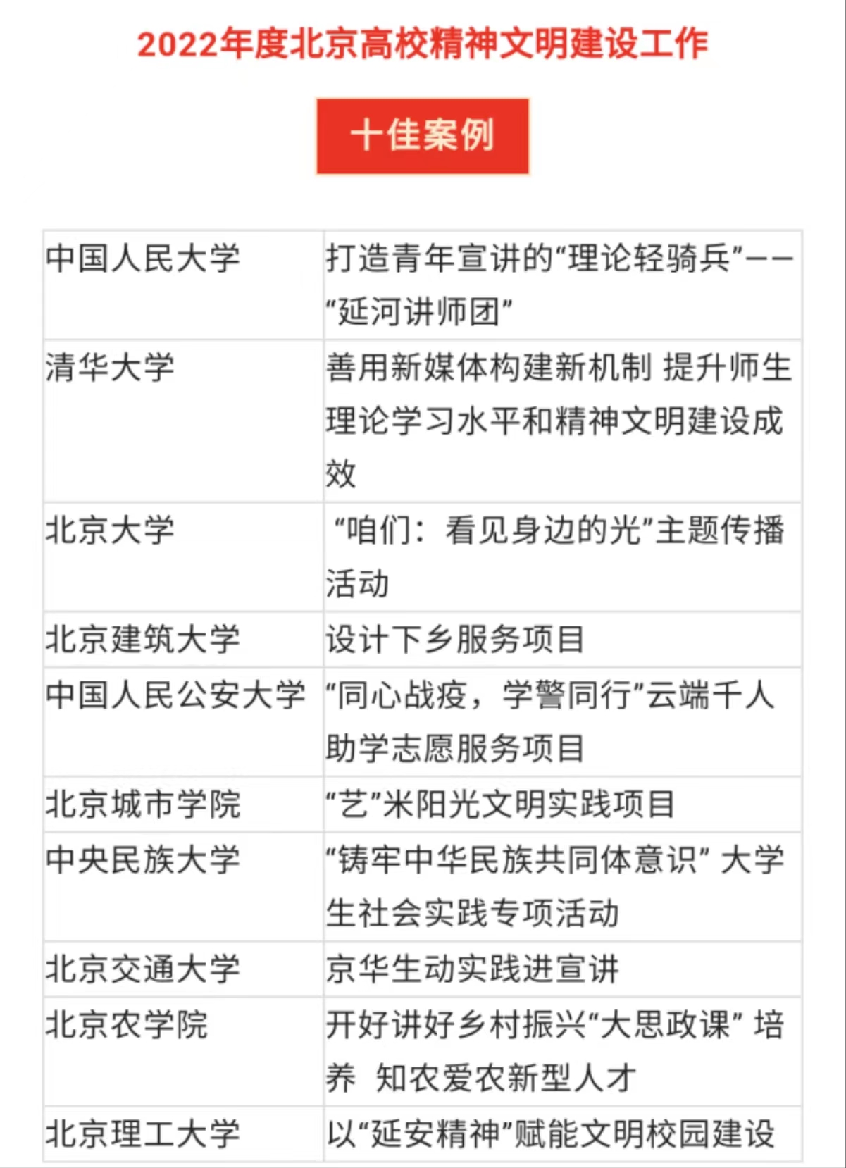 近日,2022年度北京高校精神文明建设工作优秀案例评选结果揭晓,学校报送的“开好讲好乡村振兴‘大思政课’ 培养知农爱农新型人才”文明实践案例获评“2022年度北京高校精神文明建设工作十佳案例”。