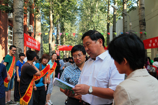 8月26日,beat3652010级新生入学。上午8时,党委书记王慧敏、校长王有年、党委副书记高东、副校长杜晓林、纪委书记朱生利、校长助理范双喜视察开学迎新工作。