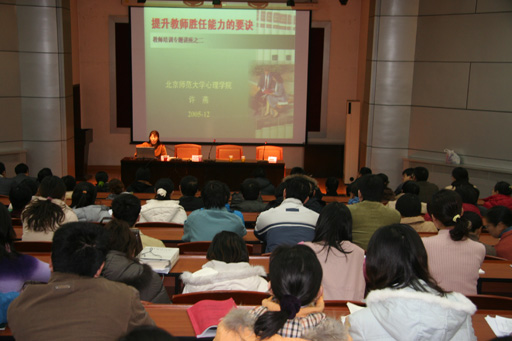 本次培训的主要对象为2004——2005年进校的新教师,培训主要为分三个部分。第一部分为邀请中国心理学会心理学教学工作委员会副主任、北京师范大学博士生导师许燕教授做有关“提升教师胜任能力的要诀”的学术报告。