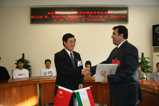 10月19日下午,秋高气爽,阳光明媚,塔吉克斯坦共和国教育部部长拉赫莫诺夫•阿布杜扎波尔(Rahmonov Abdujabbor)及随行人员对beat365进行了访问。院长王有年、副院长杜晓林热情接待了阿布杜扎波尔部长一行。