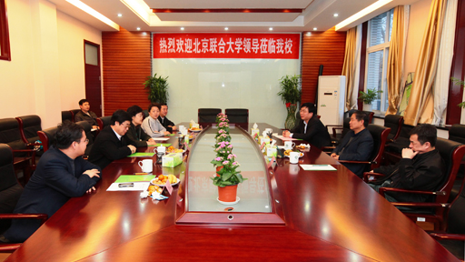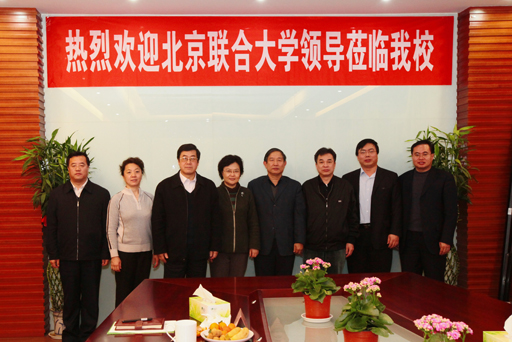 2月27日,北京联合大学党委书记徐永利、校长柳贡慧、副校长张连城一行来beat365调研。beat365党委书记王慧敏、校长王有年、党委副书记高东、校长助理范双喜与联大校领导进行座谈。座谈会由党委副书记高东主持。