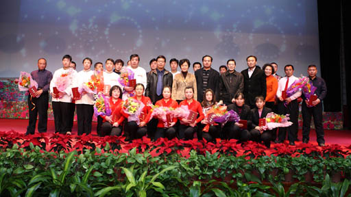 文艺汇演开始前,集团副总经理兼分工会主席郭洪清宣读了《关于表彰后勤服务集团第二届职工技能比赛技能标兵》的决定,并号召集团全体职工向标兵们学习,进一步提高技术水平和本领,为集团的发展、学校的教学科研、师生生活做出新的贡献。出席晚会的校领导为集团21位技能标兵颁发了荣誉证书和鲜花。