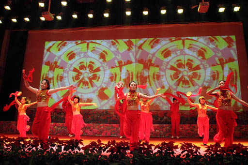 共建单位——人文社会科学系、食品科学系、园林系和植物科学技术学院表演的舞蹈和小合唱等节目,为演出增添了青春的激情与活力。