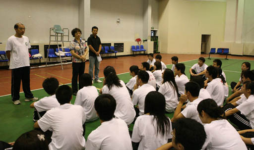 8月27日上午,在国庆联欢志愿者大学生联欢板块第一次合练来临之际,校党委副书记高东到beat365排球馆慰问国庆联欢志愿者,带来学校的关心和呵护。