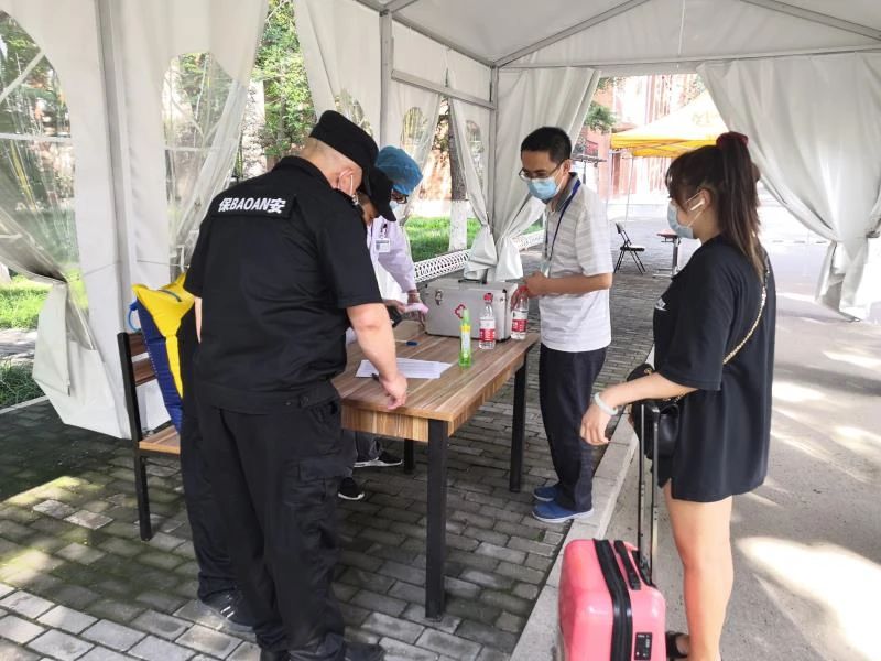 为保障首日返校工作有序进行,研工部、安稳处、校医院等部门负责人和相关人员,分别到校园正门、白杨路南端大门、东区宿舍点检查工作情况,协助测量体温、核验返校人员身份,严守第一道关。后勤公寓中心负责在宿舍门口核实核酸信息、入住信息,保障入住安全。为做好本次秋季开学疫情防控工作,研工部组织各学院为返校学生发放了爱心口罩,提醒返校学生做好个人防护。