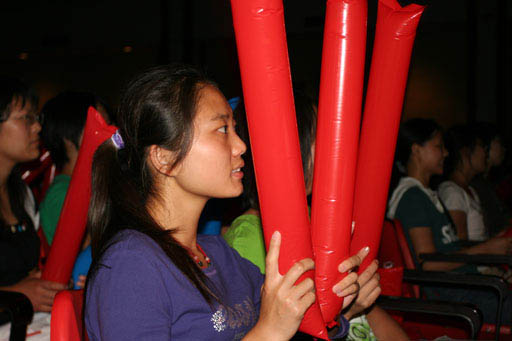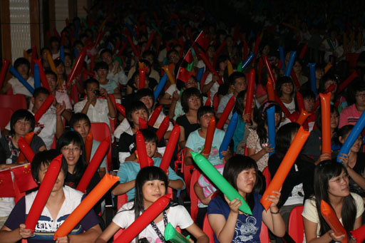 还未到7点钟,同学们已陆续进入礼堂,一同等待为这个激动的时刻加油喝彩!当大屏幕上出现鸟巢的外景时,同学们欢呼雀跃,虽然没能在鸟巢现场观看,但兴奋激动的心情毫不逊色于身临其境的感受。同学们一阵阵敲击手中的充气棒,全场的气氛随着开幕式的分秒临近而逐渐升温。