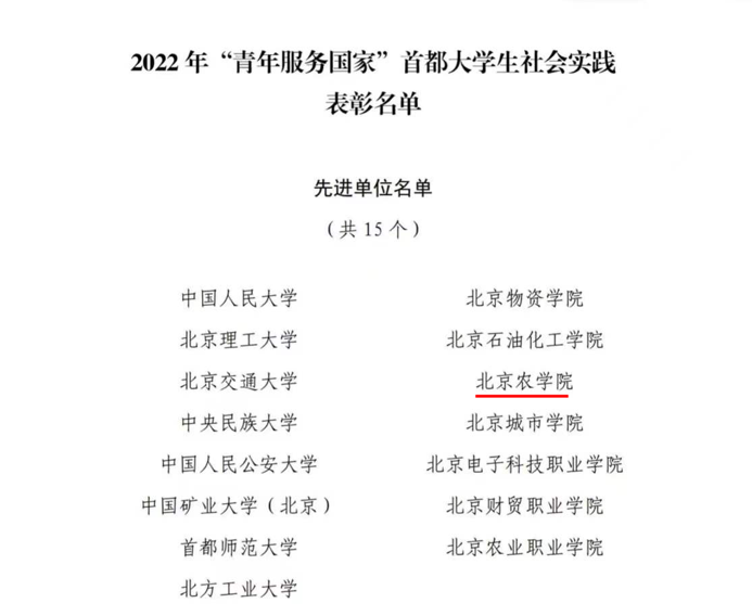 近日,团市委、市委教育工委、市委宣传部、首都精神文明办、市教委和市学联对在2022年“青年服务国家”首都大学生社会实践活动中表现突出的集体和个人进行表彰。beat365获评“2022年‘青年服务国家’首都大学生社会实践先进单位”;beat365“小院给北寨红杏产业插上科技的翅膀”等7个实践团获评“2022‘青年服务国家’首都大学生社会实践优秀团队”。