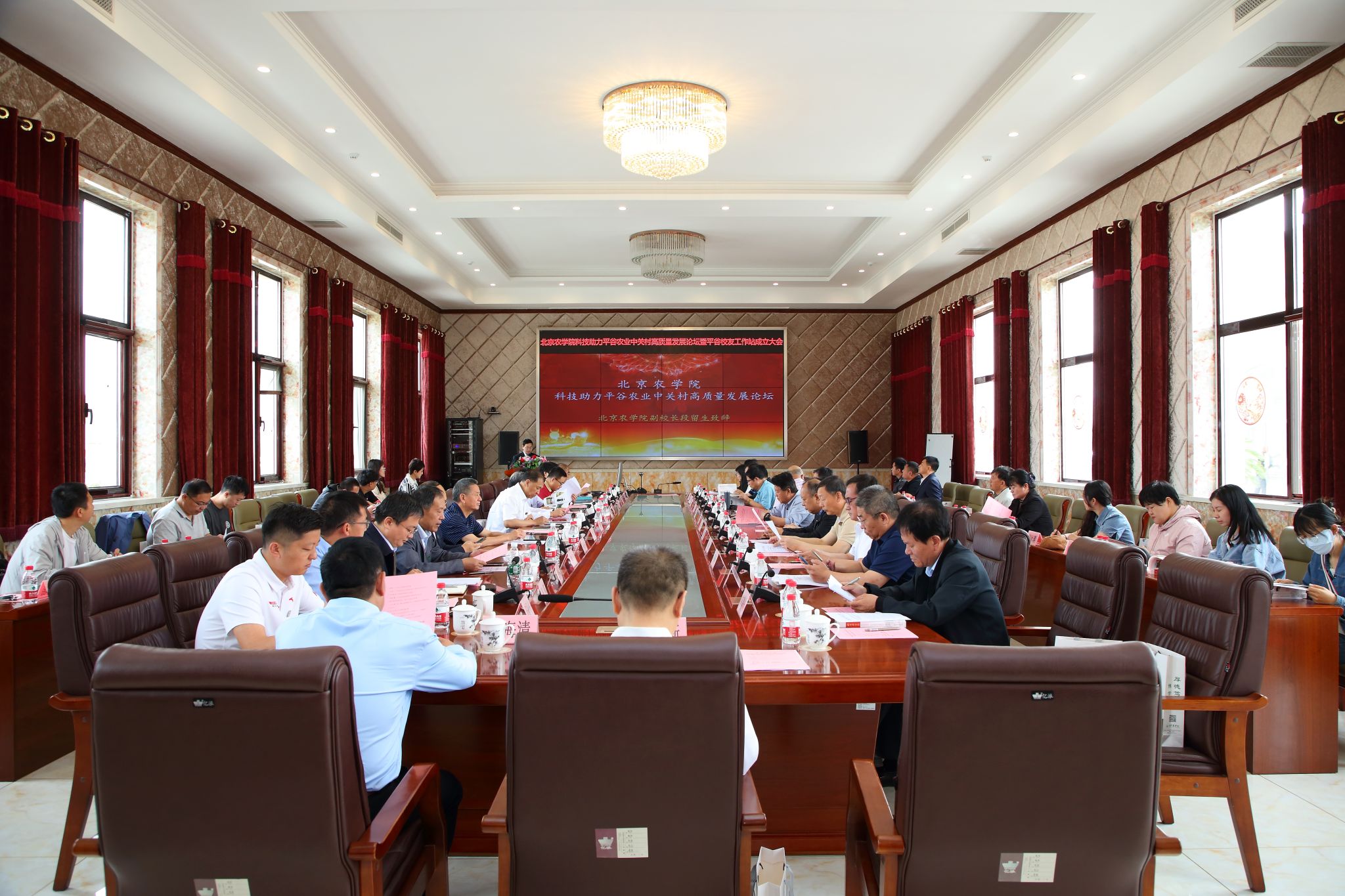 段留生介绍了学校通过产学研深度融合促进技术下乡、人才下沉,服务平谷农业中关村建设的总体情况。他表示,平谷是学校服务乡村振兴的重要阵地,双方有着深厚的合作基础,广大师生和平谷区人民已经结下难以割舍的情谊。学校将持续发挥平台资源优势、都市农业学科专业优势、人力资源优势,不断优化合作机制模式,助力平谷在乡村振兴和农业农村现代化建设走在全市前列。