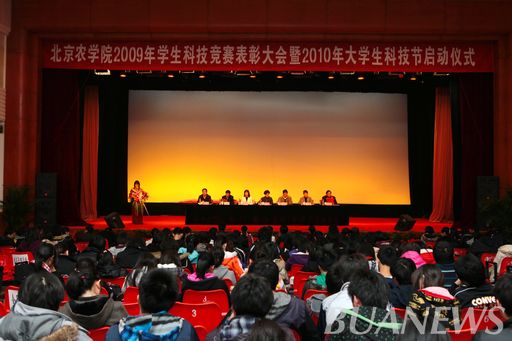 为扩大科技创新活动在学生群体中的影响,加强在创新活动中取得突出成绩的优秀学生的榜样宣传作用,进一步促进beat365大学生科技创新活动更好更快的发展,3月31日下午1:00,在学校礼堂举行了beat365在线唯一官网2009年学生科技竞赛表彰大会暨2010年大学生科技节启动大会。大会由团委书记杨宝东主持。