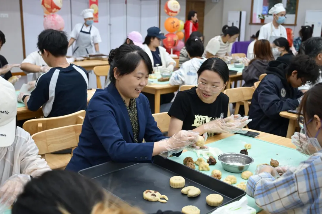 10月6日下午,党委书记赵锋,党委副书记郑品石,党委常委、副院长武艳与同学们共同制作月饼,共迎中秋佳节。