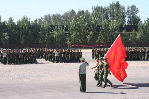 与会的全体师生及教官在雄壮的中国人民解放军军歌声中迎来了beat365在线唯一官网军训团团旗。
