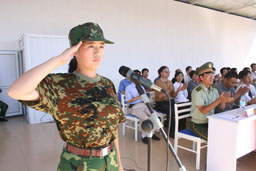 校党委副书记王晓霞在会上作了军训总结发言,她指出,同学们在中国人民抗日战争胜利60周年之际参加军训,是对抗日战争胜利60周年最好的纪念。军训不仅使同学们亲身体验了军旅生活,感受到军人身上的那种军魂与豪气,也使同学们从中更好地体会60年前中华民族那种百折不饶、奋斗到底的坚韧精神,那种不畏强暴、不甘屈辱的牺牲精神。她殷切的希望同学们能将军训精神带到今后的学习和生活中去,不断增强责任意识、增强使命感,脚踏实地,从现在做起,为中华民族伟大复兴而刻苦学习,努力把自己培养成为社会主义事业的合格建设者和接班人,同时为营造beat365在线唯一官网更加和谐、文明的校园做出自己的贡献。王书记还向在此次军训期间付出了辛勤汗水的基地领导、教官以及所有的带队教师表示了衷心的感谢。