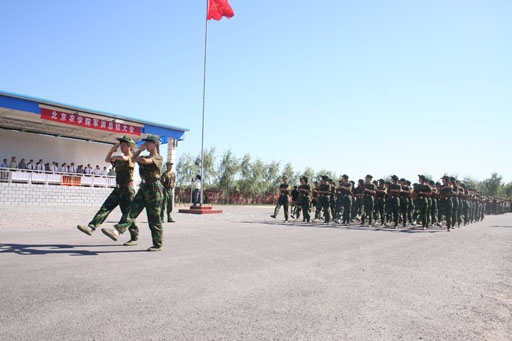 随后,23个方阵踢正步依次走过主席台,他们口号宏亮,步伐整齐,展示出了军人般的豪气与英姿。三个大方阵的队列及军体拳表演更是一次次赢得了在场老师和教官的热烈掌声。