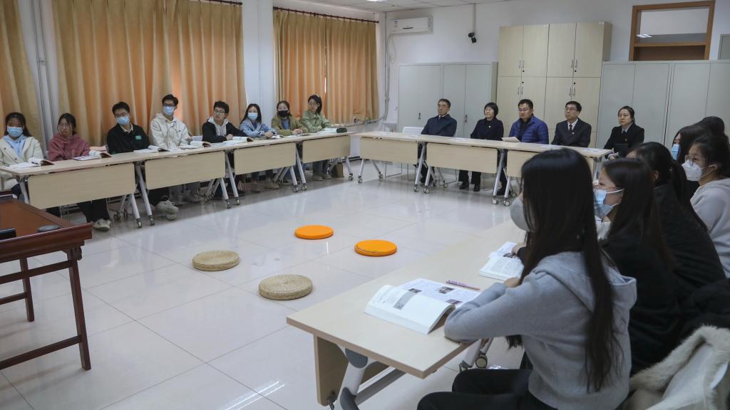 汇报会后,专家组认真审阅了近年来学校党建和思想政治工作有关材料,召开了学校党建和事业发展、基层党建工作、宣传思想工作三场座谈会,与职能部门负责人代表、党员师生代表深入交流,了解相关工作情况。