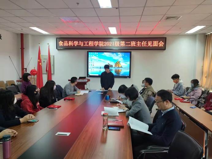 食品科学与工程学院第二班主任见面会上,各班依次用海报和视频向第二班主任全面展示了近两个月以来的大学生活。党总支副书记王雪代表第二班主任发言时表示,第二班主任和第一班主任、班干部们各尽其能,一定能引领带动全体同学,做好班级建设工作,力争学生个个学有所获,班级各美其美,引领学生成长成才。