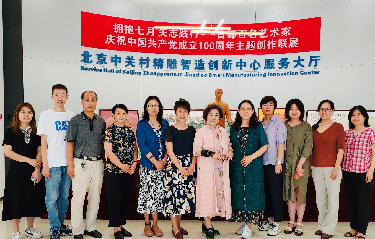 7月15日下午,学校知联会与北京知联会、东城区知联会共同参观“百幅佳作庆百年”首都无党派人士庆祝中国共产党成立100周年主题创作联展,并进行交流座谈。会议由北京知联会秘书长黄殿琴主持。东城区委统战部副部长汪志修以及东城知联会部分成员,学校知联会理事长、科学技术处处长马晓燕,统战部副部长靳晓熙以及知联会部分教师参加活动。